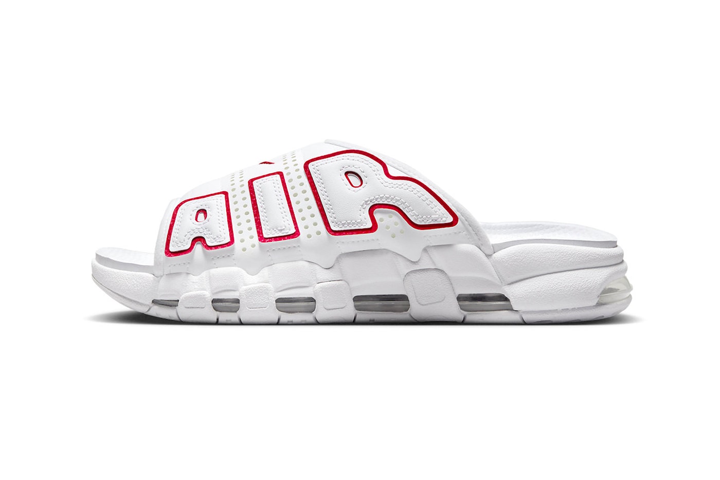 〈Nike〉Air More Uptempo Slide “White/Red” の価格は85ドルで、数カ月以内に海外の『SNKRS』などで販売される予定です。詳細な発売日や販売方法については公式のアナウンスを待ちましょう。一足先に上記のフォトギャラリーでディテールをチェックしてみることもおすすめです。